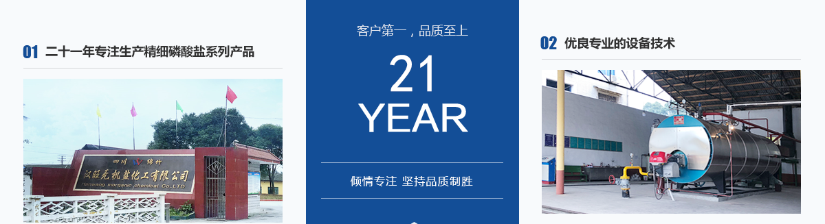 本公司位于四川省綿竹市漢旺鎮(zhèn),是自1997年成立以來(lái)至今,已發(fā)展成為四川生產(chǎn)經(jīng)驗(yàn)豐富的精細(xì)磷酸鹽系列產(chǎn)品專(zhuān)業(yè)生產(chǎn)廠(chǎng)家,地理位置優(yōu)越,毗鄰四川新市和拱星工業(yè)園區(qū),與什邡磷化工生產(chǎn)基地交相輝映。主要生產(chǎn)產(chǎn)品有:磷酸二氫鉀、酸式磷酸鉀、磷酸氫二鉀、磷酸脲、磷酸二氫鈉、磷酸氫二鈉、磷酸三鈉、磷酸二氫銨、磷酸氫二銨等系列磷酸鹽產(chǎn)品。